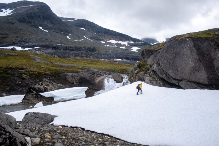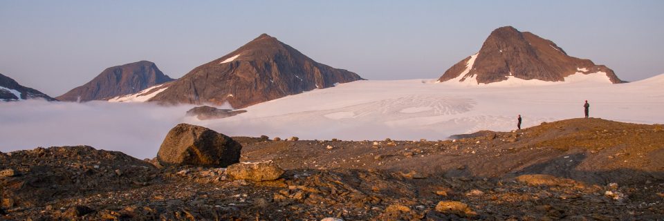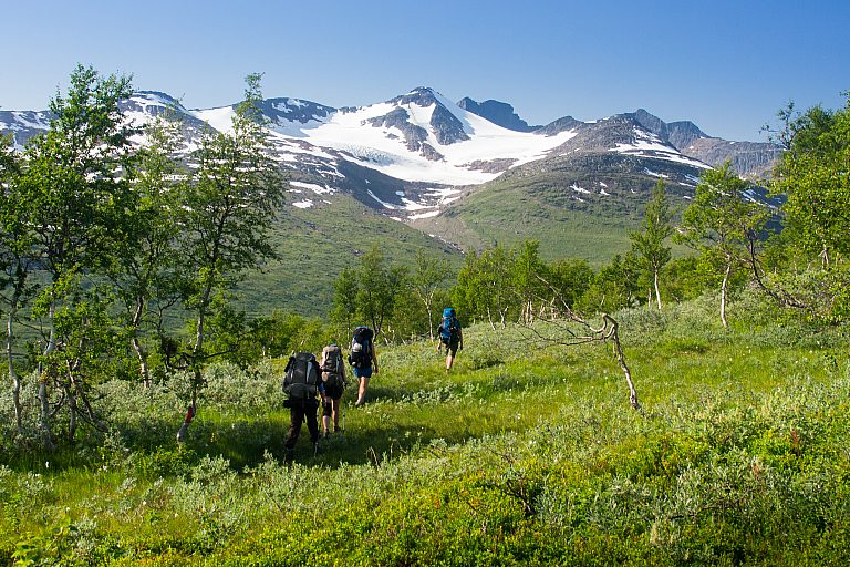 Dat doet echter niets af aan de grandeur van het landschap: gigantische gletsjers duiken hier sierlijk groene valleien in, waar ze rivieren voeden die zich doorheen uitgestrekte veenmoerassen slingeren. We wandelen helemaal rondom het massief, steeds met geweldige overzichten over het uitgestrekte landschap. Hier wandel je door prachtig berkenbos, om enkele uren later aan de snuit van een gigantische gletjser te staan. Bivakkeren doen we op enkele echte panoramische top-locaties. Bij mooi weer hebben we bovendien de kans om de hoogste toppen van het massief te beklimmen, waaronder de Okskolten (1912m), de hoogte top van Noord-Noorwegen.